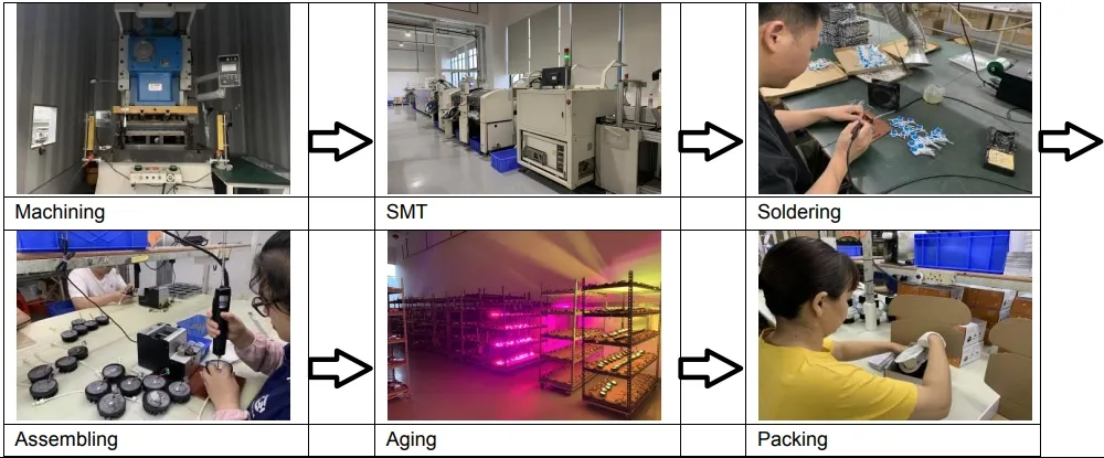 Our manufacturing facility includes hardware production, an R&D center, and advanced facilities such as auto-soldering machines, SMT machines, and CNC laser equipment. We utilize more than 10 low-voltage aging lines to maintain a high monthly production capacity.
